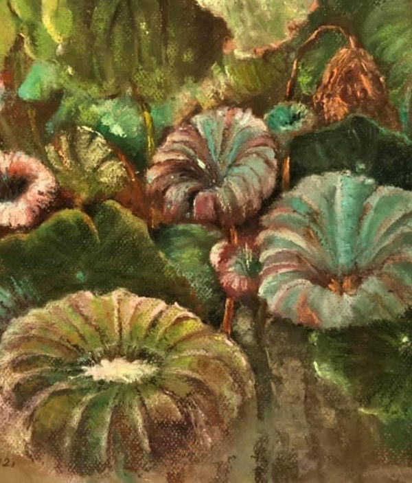 生命中存在著盼望和色彩,山澗水流的生生不息,草木花葉的綻放凋零,延續與動力,成為了她創作的主軸。喜歡簡樸與自由的筆觸,喜愛油彩和粉彩的灑脫,讓大自然的生機來廣闊想像空間,期望創造一個自己的世界。
